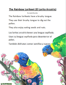 While my family and I spent a few days with my sister-in-law in Australia, I have had the pleasure to come across these beautiful birds. Their colors were so vibrant and lively. I have never seen a wild bird with such variation of colors. Many Aussies are proud to say that they have the most beautiful birds in the world and I can attest to that. They are truly magnificent! Upon more research, these birds have such a unique anatomy. Learn more about them with this reader. Your prek student will truly enjoy learning about them.