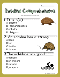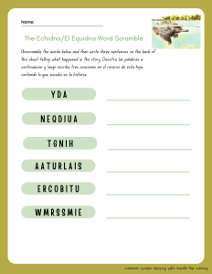 I thought it would be cute to write a story about the echidna and its unique features. I took the time to explain what it looks like and what it can do. They are such cute little creatures but be careful not to touch them! You might end up with a spine or two.