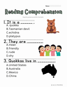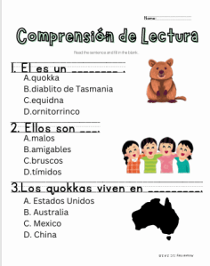 - Reading comprehension questions in Spanish and English/Comprension de lectura